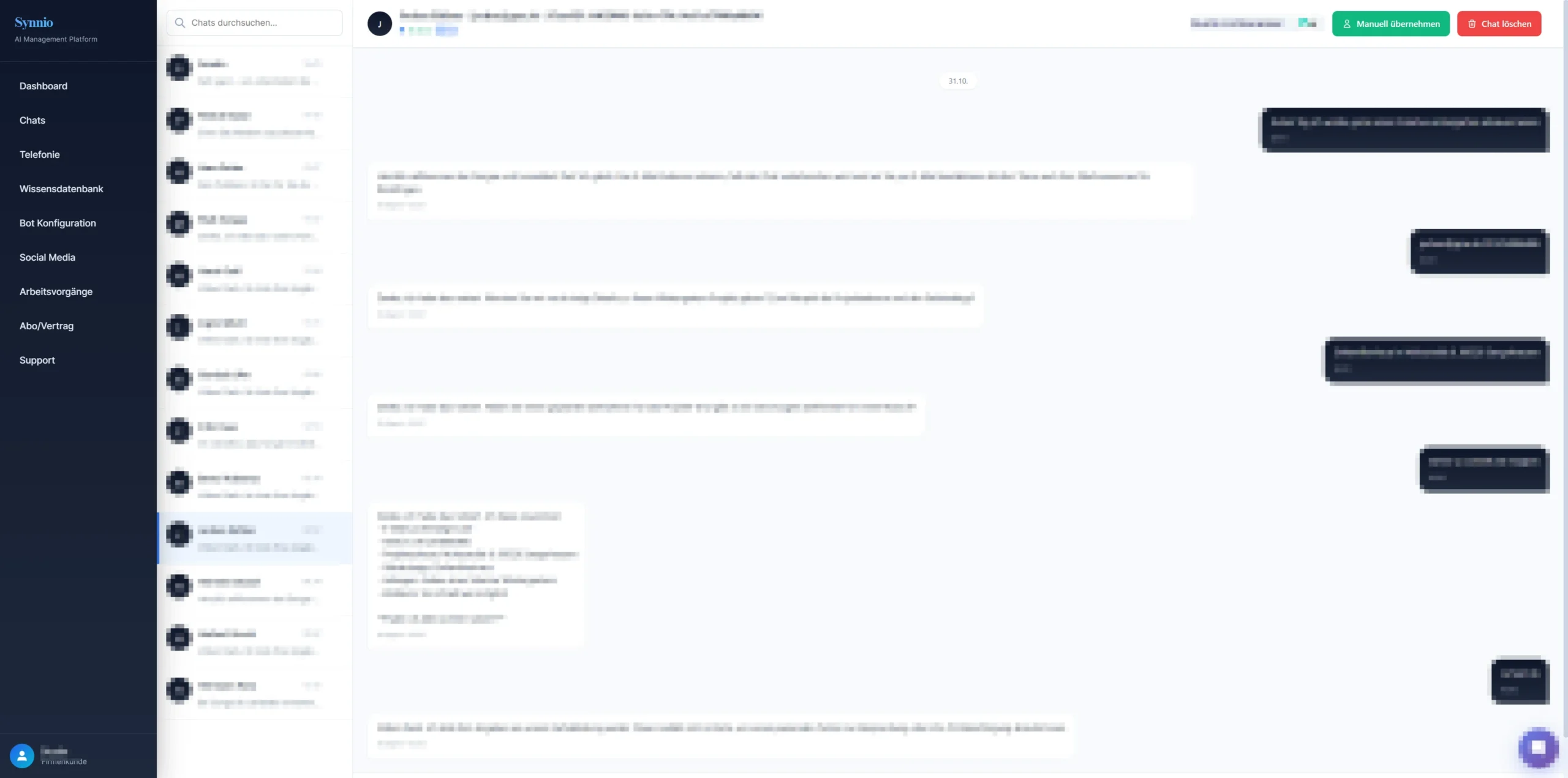 Über das Synnio-Dashboard behalten Unternehmen jederzeit den Überblick über alle Chats.