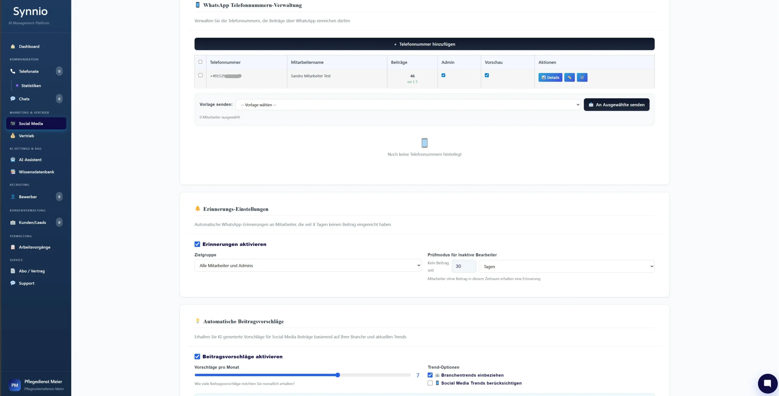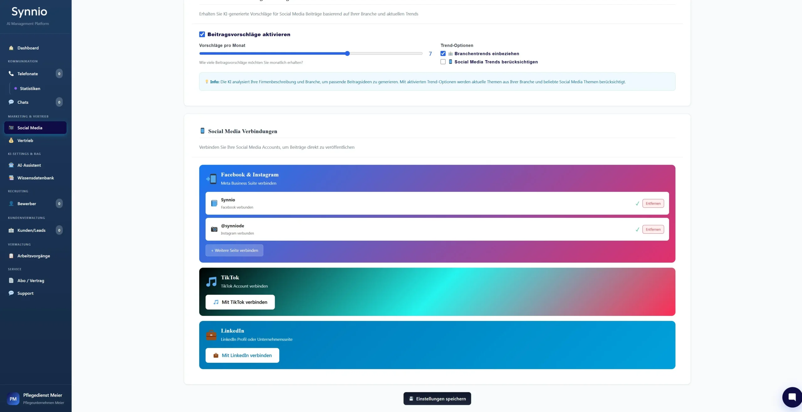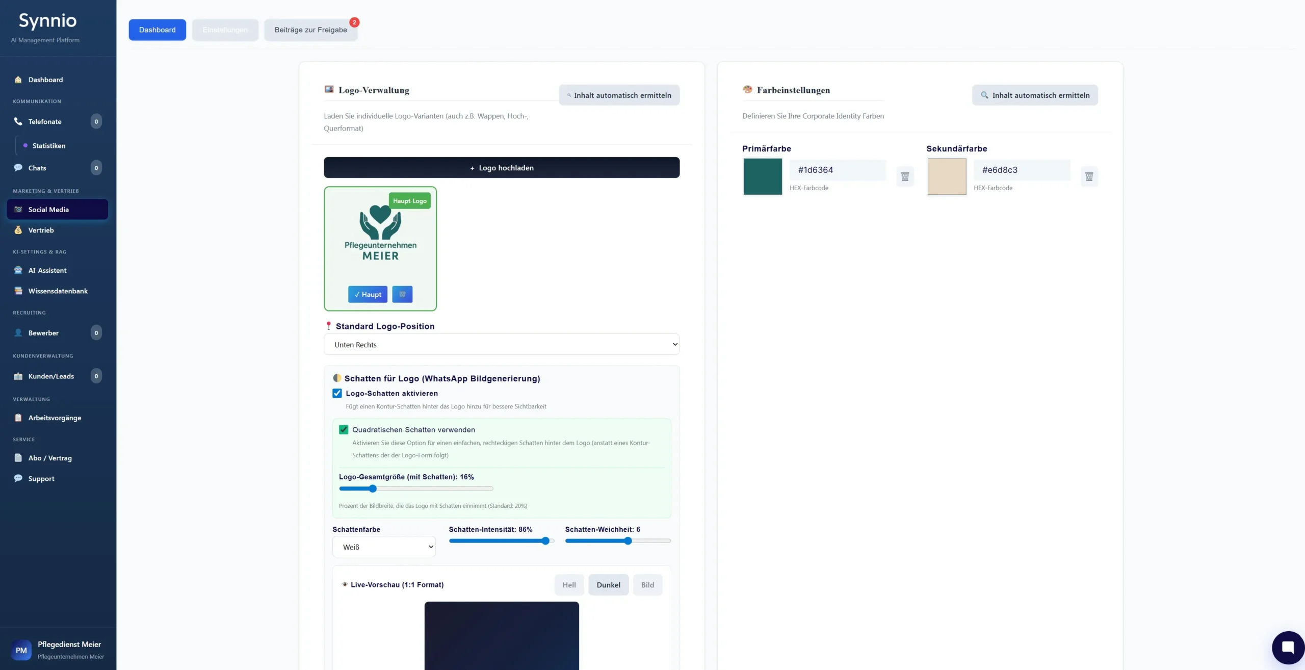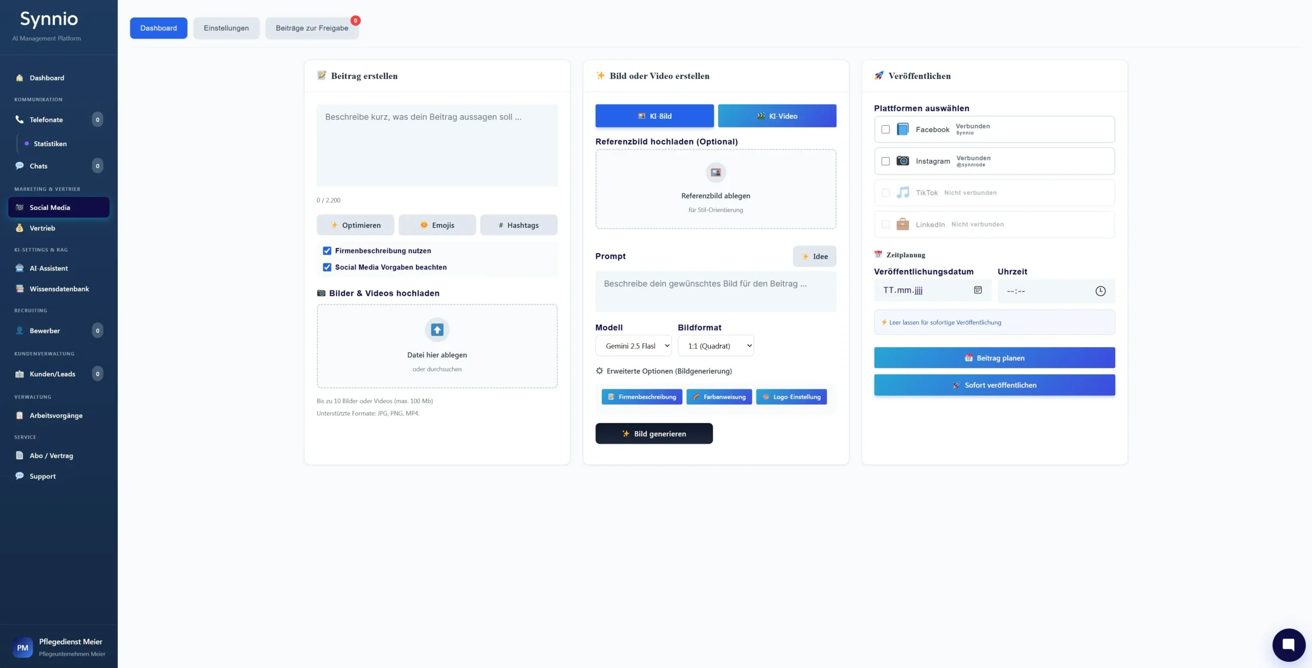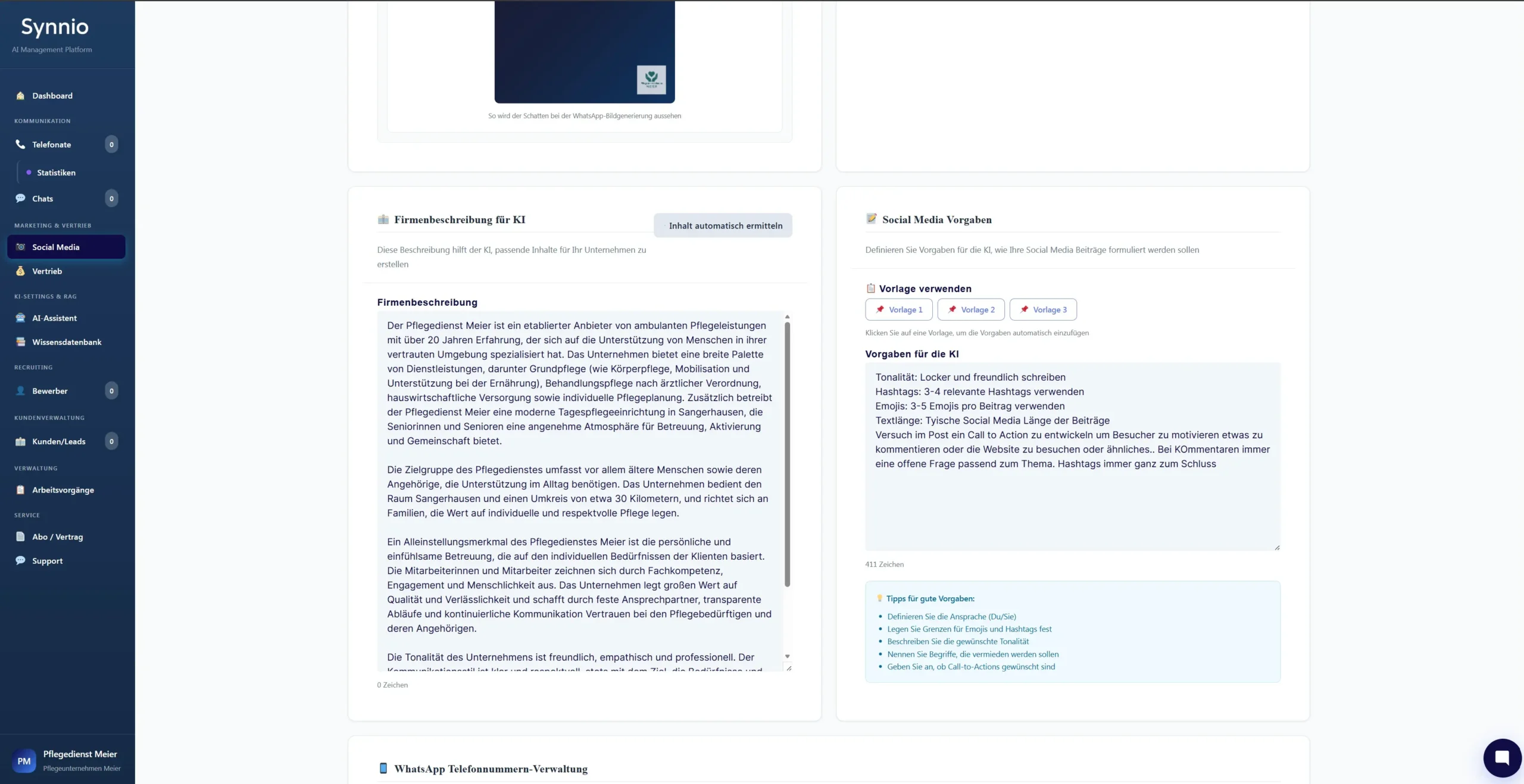 | Unternehmensdashboard mit KI-Social Media Assistenten | |||